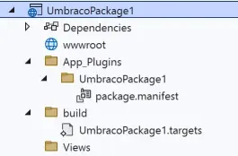 So, lets get started. We begin by creating a new project using the Umbraco package template, then add a wwwroot and a Views folder to the project, ending up with a project layout similar to the image.